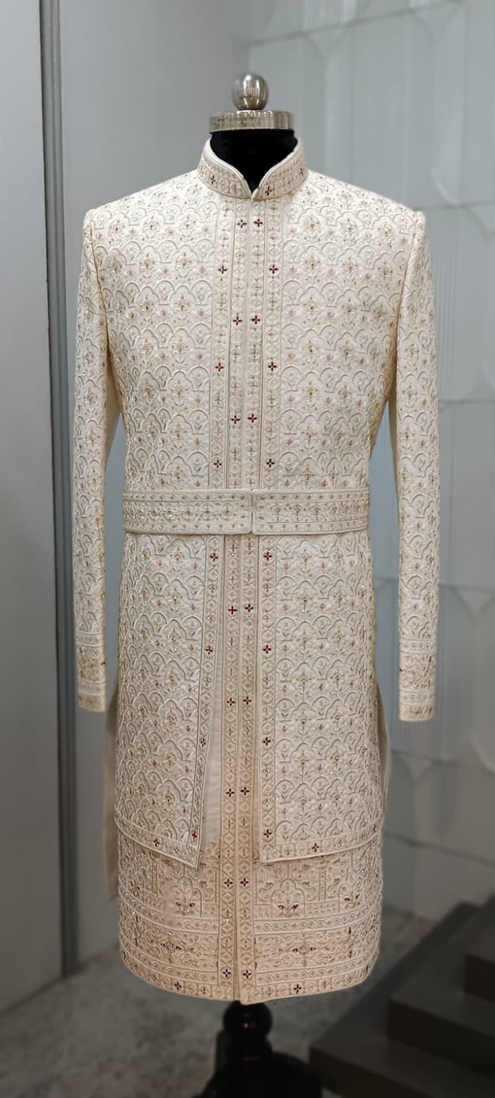 As part of Sheriff’s exclusive ethnic wear collection, this sherwani reflects timeless craftsmanship and modern sophistication – designed and made in Jaipur, the heart of India’s fashion heritage.
